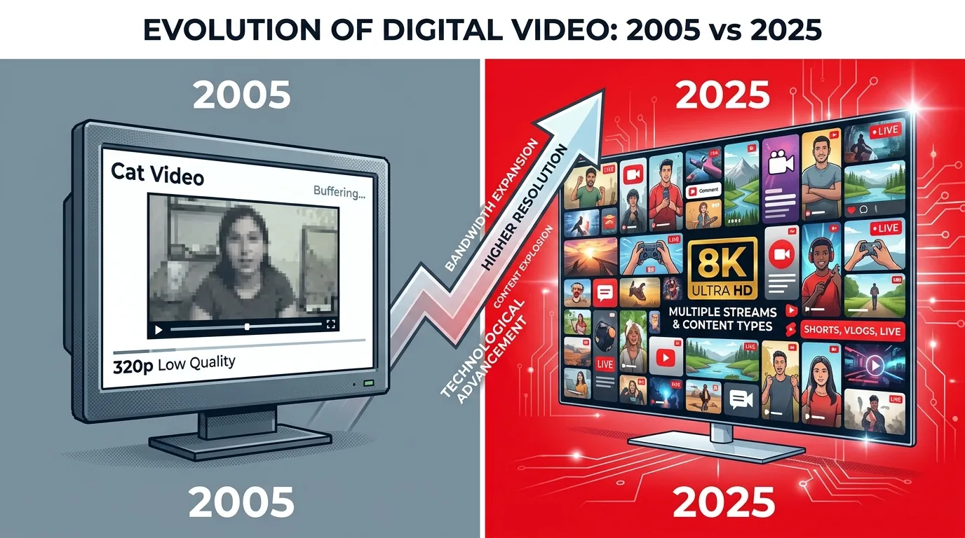Разрыв между ранним YouTube и платформой 2025 года выглядит почти абсурдно:
